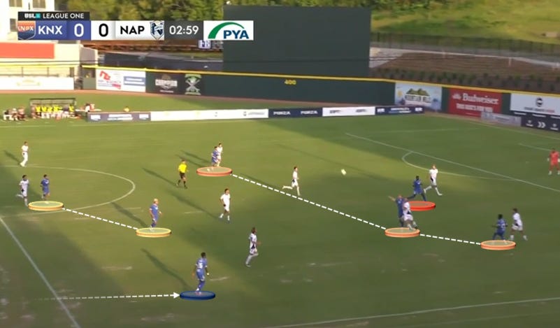 Now, it doesn’t always go to plan. Knoxville gets bogged down when they aren’t creating short-field, transitional opportunities. Against Naples, Rosamilia and Smith struggled to involve the fullbacks on the overlap in the final third. Goling, who’s been unreal as an anchoring dueler of a No. 10, can be hesitant on the edge of the box.