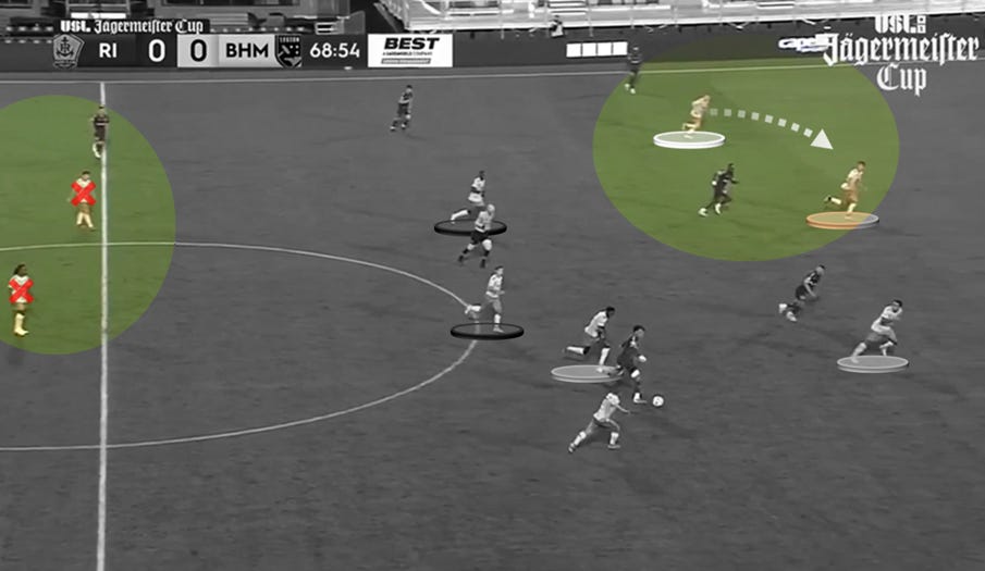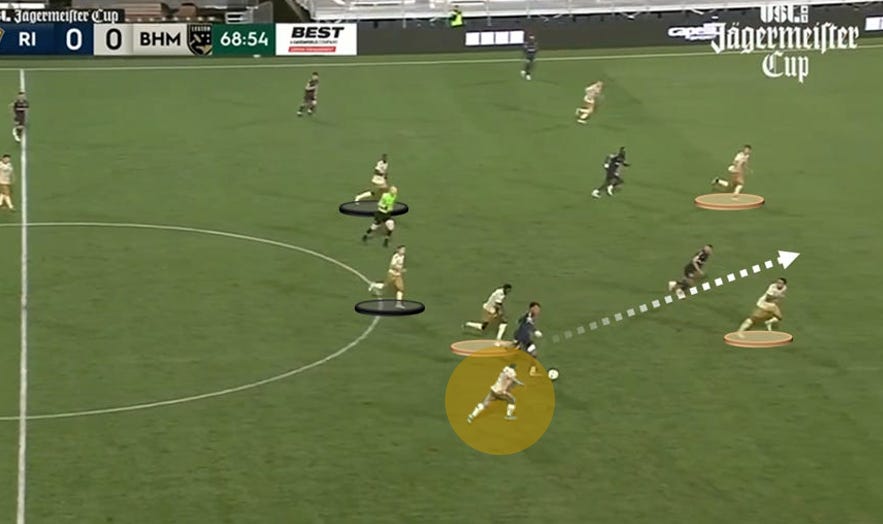 In practice against Rhode Island, Laszo and McIllhatton were primarily culprits in a match where Birmingham won just 43% of their duels and allowed 101 pass completions in the final third. The defensive stopping wasn’t there, nor was any sense of progression; the Legion completed a truly dismal 34 passes in RIFC’s third and generated just 0.22 xG.