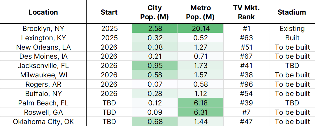 Brooklyn and Lexington are set to join the league next season. Buffalo, Roswell, and Palm Beach have been confirmed as Championship cities of the future - and you know we got the classic “Justin Papadakis holds a soccer ball” photoshoots to prove it. With those markets in tow, the league now has 10 active expansion projects and one revival on deck.