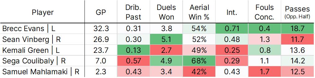 The result for the Jamaican international? 1.1 shots and 5.6 aerial wins per game, plus three total goals. Luis Felipe did similarly in Sacramento, putting up 1.5 shots and 4.9 aerial wins a match.