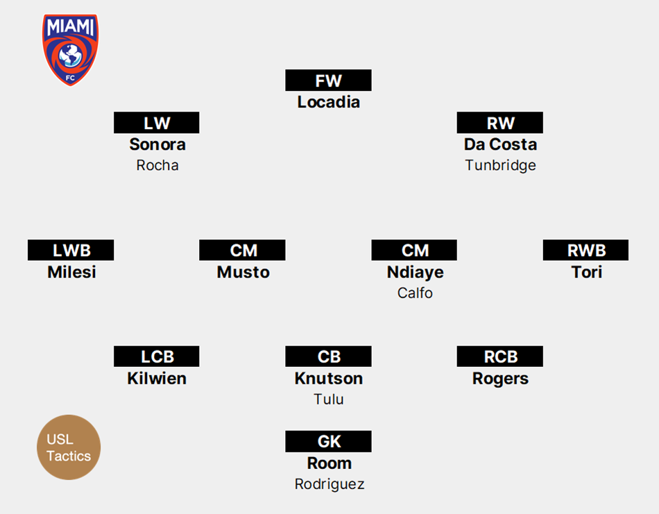 Miami mostly used a back four last year, but they’d often keep their fullbacks low and experimented with a 3-4-3 late on. Maddoni’s side advanced play by 8.0 yards per pass, sixth-most in the USL, yet still managed to keep 49% of the ball. They ranked roughly at par for PPDA and final-third regains, typically focusing their aggression closer to the midfield line. In broad strokes, that vertical but structured template should recur.