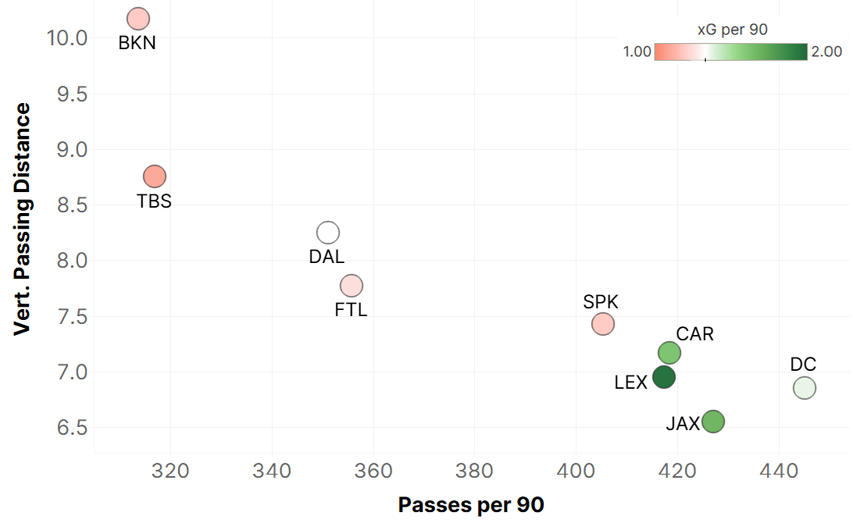 Entering the break, it remains remarkable how well the league’s more restrained systems have performed. Clubs like Lexington, Jacksonville, and Carolina are, in terms of their passing profiles, the most controlling in the division – all are completing roughly 420 passes per game, and they’ve combined to post a +23 goal difference. At the same time, the last matchweek of 2025 illustrated how things are tighter than they might seem, even for those top-of-the-table contenders.